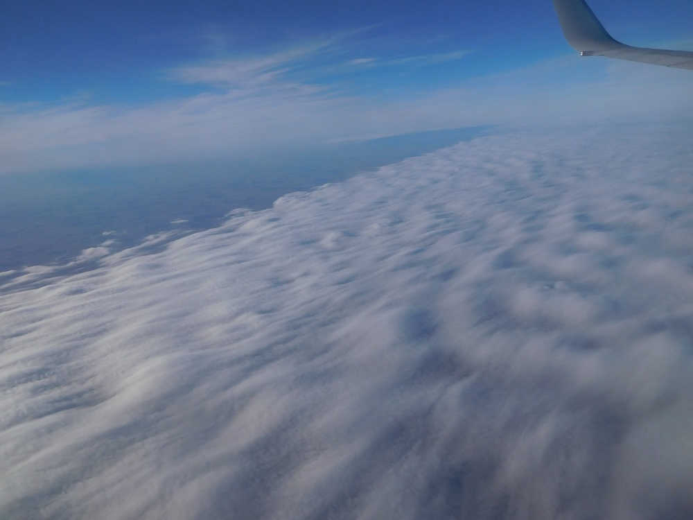 Once on a trip across the country, my plane was flying across a cloudless sky. Up ahead I could see a flat layer of clouds. From a distance, the clouds looked like someone had unrolled a carpet in the sky. The cloud was one, single blanket that abruptly started and continued for miles.